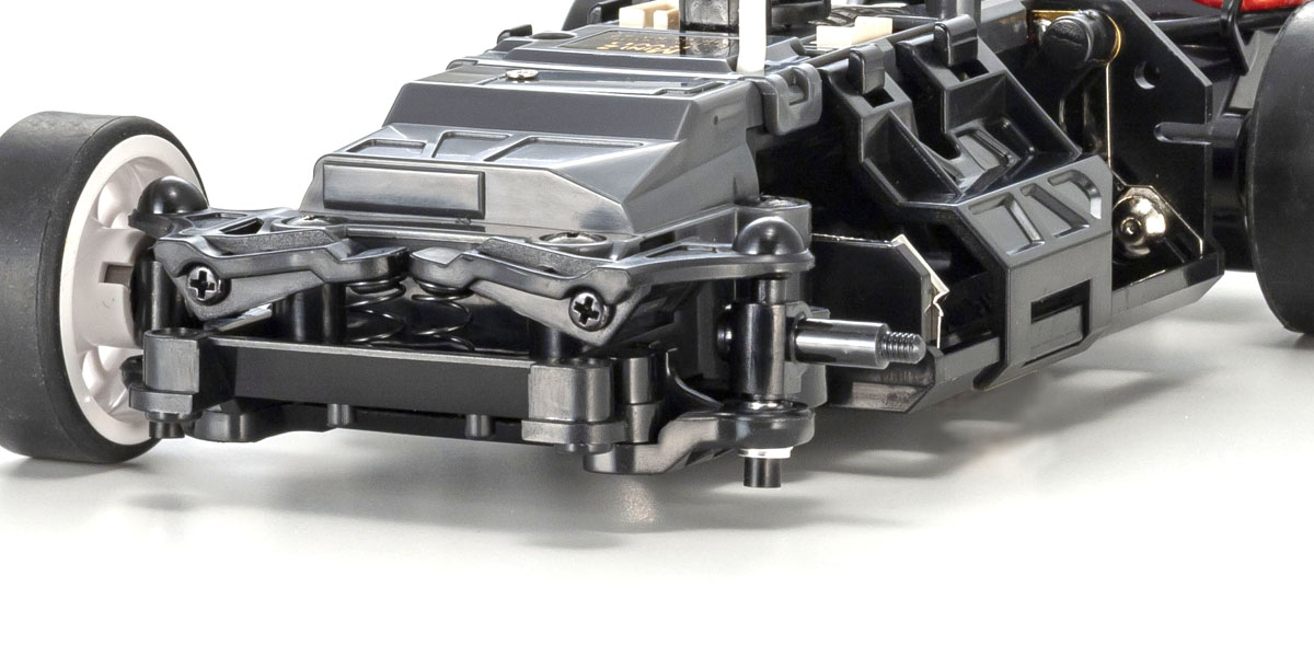 Flexibility of the T-bar rear suspension plate that holds the entire rear pod, including the motor and rear axle, produces excellent suspension effect. Optional parts are also available in FRP and carbon.